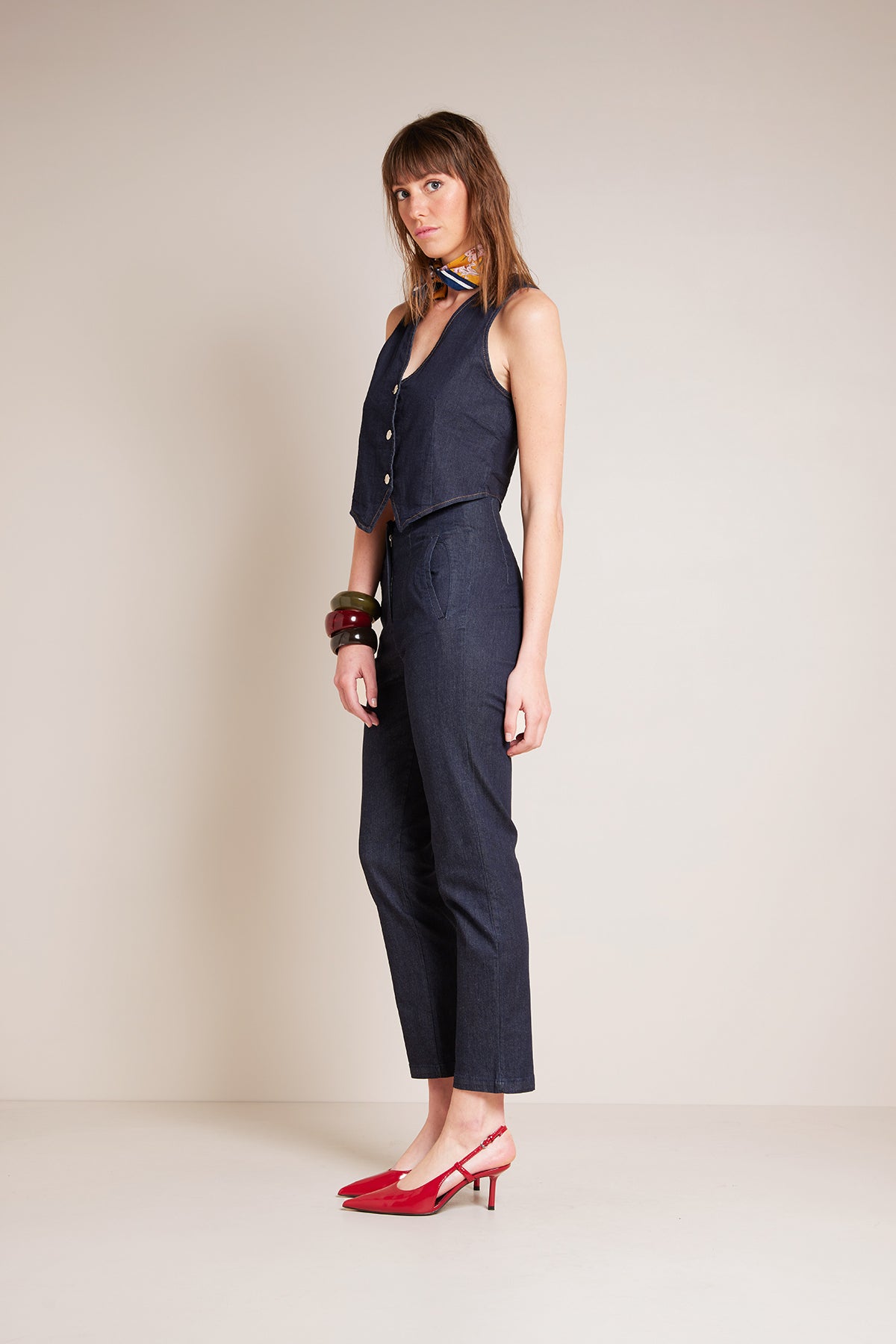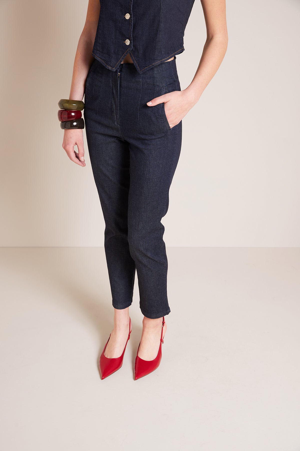 CEPLİ YÜKSEK BEL DENIM PANTOLON