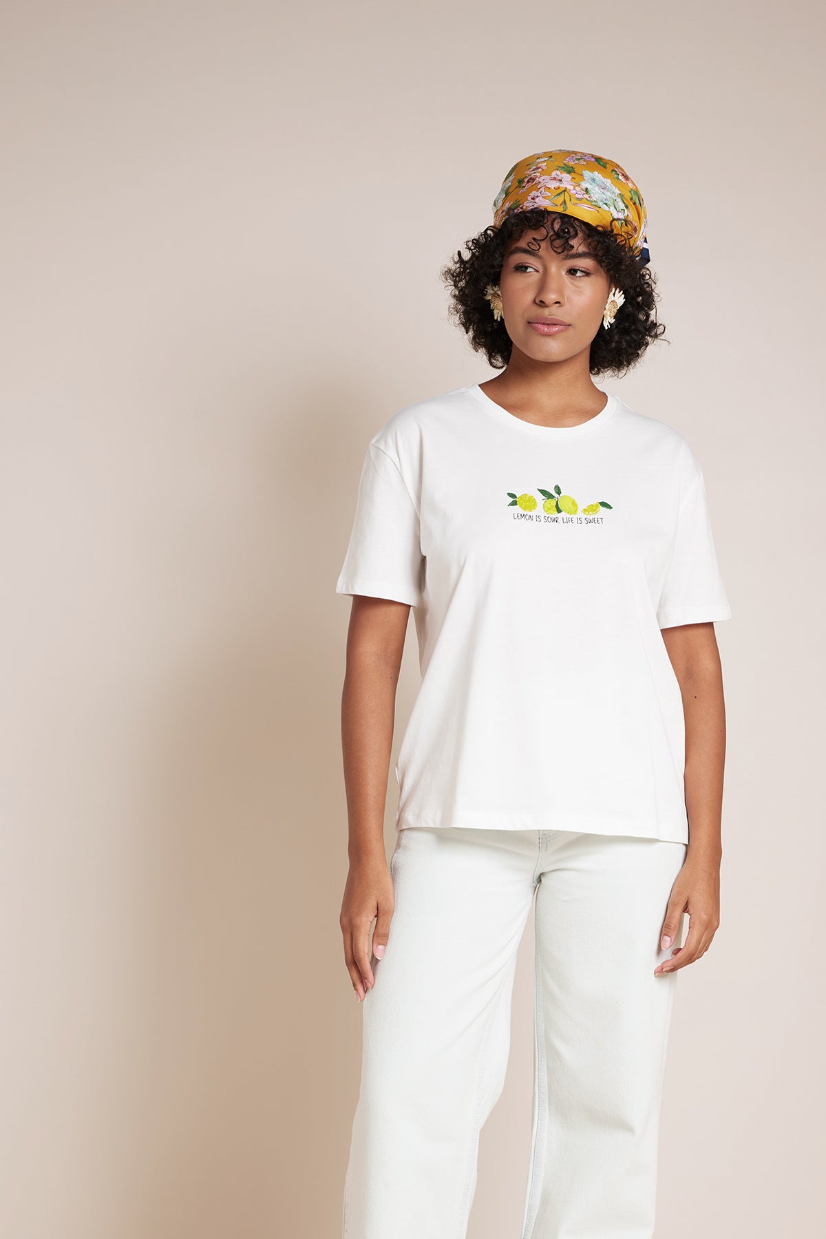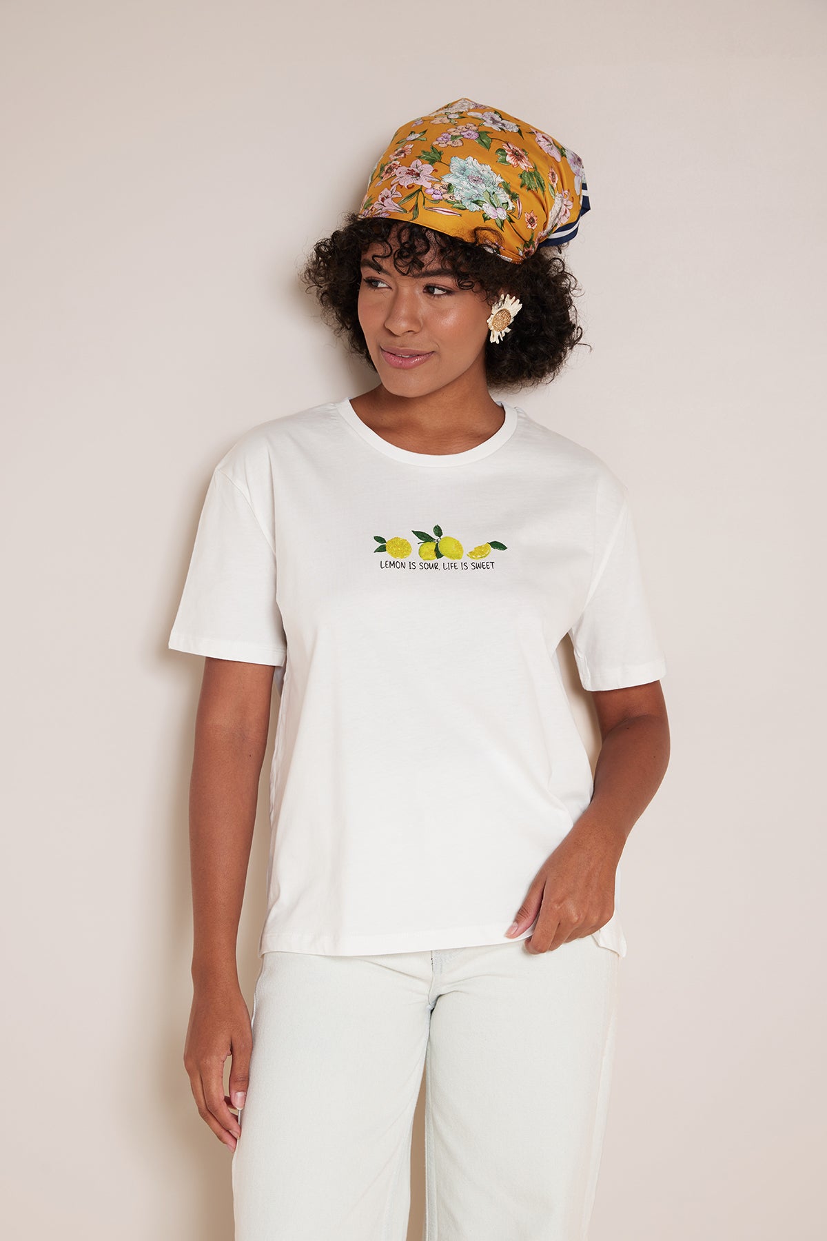 LİMON BASKILI BİSİKLET YAKA T-SHIRT